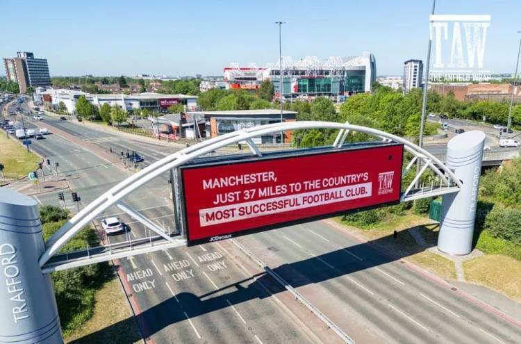 利物浦球迷打广告嘲讽曼联:曼彻斯特距英格兰最成功球队仅37英里